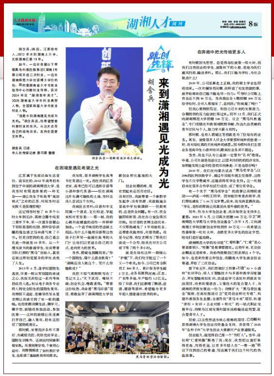 米兰体育- 米兰体育官方网站- APP下载就创先锋②丨胡含兵:来到潇湘遇见光成为光