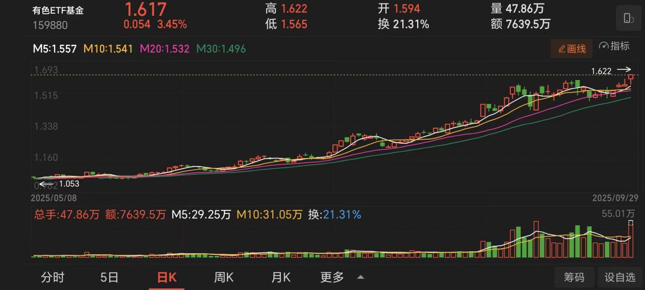 2025-09-30米兰体育,米兰体育官方网站,米兰体育APP下载昨日,工业和信息化部等八部门正式发布《有色金属行业稳增长工作方案(2025—2026年)》,明确提出2025—2026年行业增加值年均增长5%左右,十种有色金属产量年均增长1.5%,并重点部署资源开发、科技创新、绿色转型三大方向。这一政策信号与当前全球货币宽松周期、产业链供给扰动形成共振,为有色金属板块注入强动能。$有色ETF基金(SZ159880)$作为覆盖铜、铝、锂、钴等核心品种的指数工具,再创阶段新高,盘中大涨3.5%。