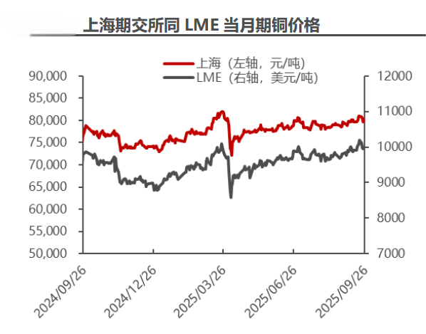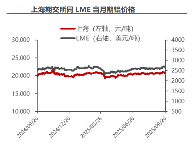 国内铝下游加工龙头企业开工率环比上升0.8个百分点至63.0%,建筑型材、汽车轻量化用铝需求持续释放。国庆假期前,下游积极备货推动铝锭社会库存降至68万吨,较上月减少15%。供应端,云南电解铝产能因水电供应稳定维持满产,但内蒙古、广西新增产能投放缓慢,2025年国内电解铝产量增速预计仅1.2%,远低于需求2.5%的增速。低库存与需求旺季叠加,铝价下方支撑明确。