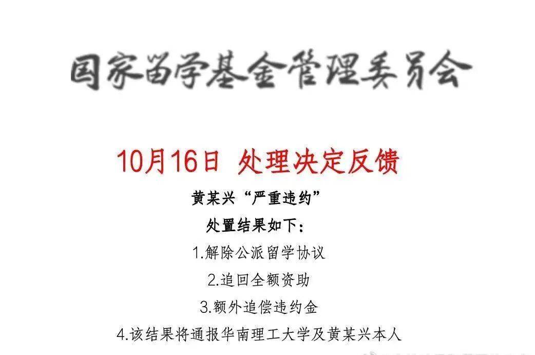 国家留学基金管理委员会反馈对黄某处理结果要相信正义不急,但从不缺席,只要努力坚持——