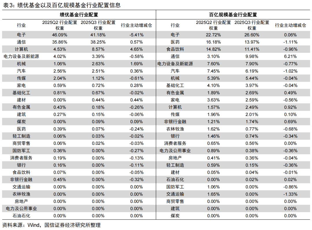 注:本文选自国信证券于2025年10月28日发布的研究报告《三季度持股集中度明显提升,科技板块配置权重超50%——公募基金2025年三季报分析》