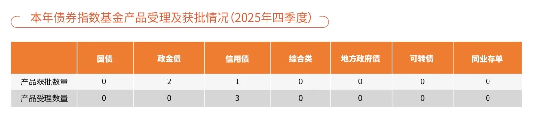近期新获批债券型指数基金方面,信用债及政金债指数基金受到关注。四季度,证监会受理信用债指数基金3只;批准政金债指数基金2只,信用债指数基金1只。