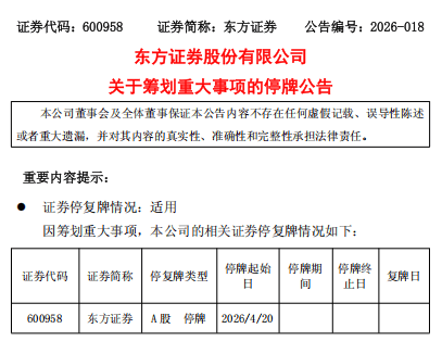2026-04-20米兰体育,米兰体育官方网站,米兰体育APP下载4月19日下午,东方证券A股发布筹划重大事项的停牌公告,称公司正在筹划通过发行A股股份及支付现金方式收购上海证券100%股权事宜。